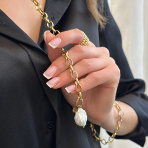 Największą ozdobą naszyjnika jest naturalna zawieszka z barokową perłą. Każda perła ma unikatowy kształt i wielkość około 3 cm. Żadna z nich nie powtarza się, co dodaje biżuterii wyjątkowego charakteru. Naturalna struktura pereł sprawia, że naszyjnik prezentuje się niezwykle szlachetnie.