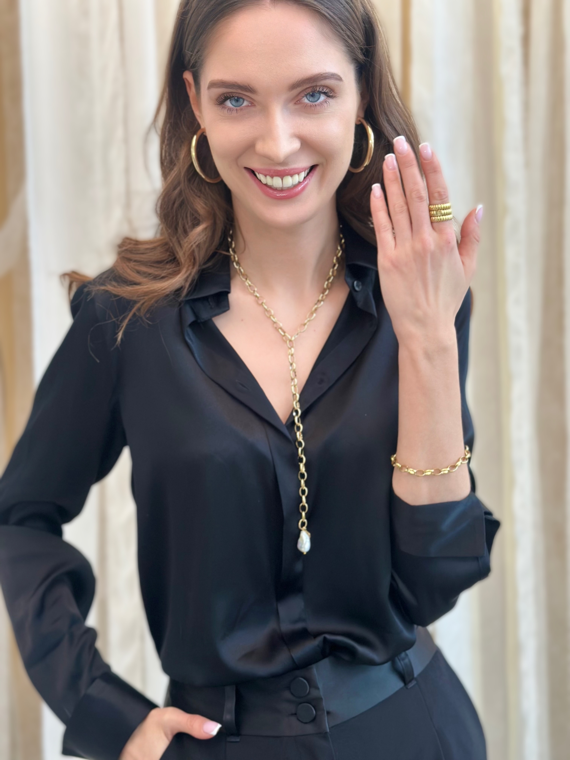 LUMI pięknie łączy się z innymi naszyjnikami Ami Bijoux. Pozwala tworzyć modne i efektowne warstwowe kompozycje. Możesz nosić go solo, jeśli zależy Ci na minimalistycznym, lecz wyrazistym akcencie. Sprawdzi się w codziennych stylizacjach, ale także w eleganckich zestawach wieczorowych.